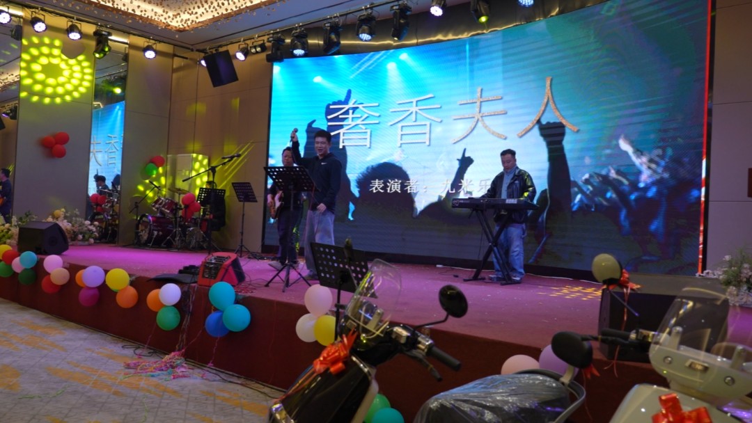 值得一提的是,九米乐队节目为年会增添了一抹别样的色彩,他们的表演充满激情与活力,赢得了现场观众的阵阵掌声与欢呼。