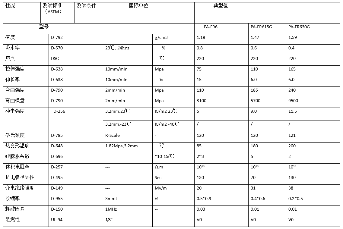 阻燃 电绝缘性能好 耐环境变化 耐热稳定 自润性 耐摩擦